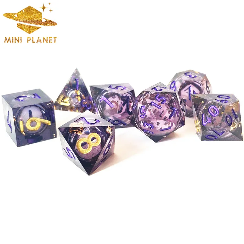 Полимерные мини-кости с изображением планеты ручной работы с острыми краями, многогранник, набор костей DND для TRPG, настольная игра с жидким с...