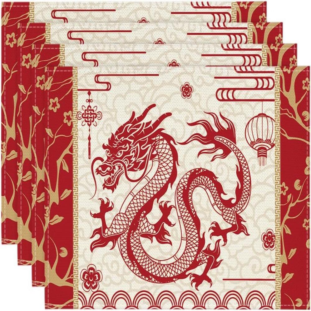 Полиэстеровый коврик для еды, китайский зодиакальный дракон, тема Весеннего фестиваля, настольный коврик, дорожка для стола, домашняя вечеринка