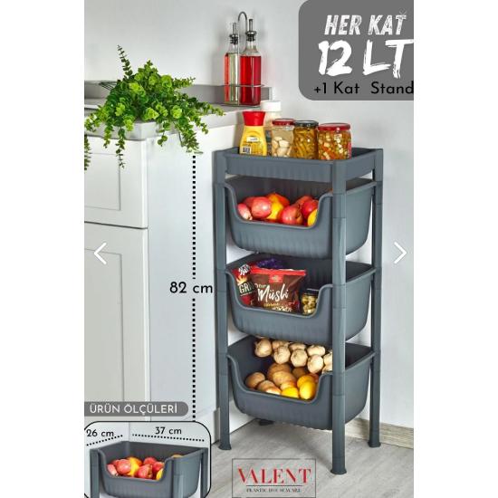 Полка для картофеля и лука «3plus1 ярус Нева», многоярусная емкость для овощей, корзина для игрушек, полка-органайзер для ванной, антрацит
