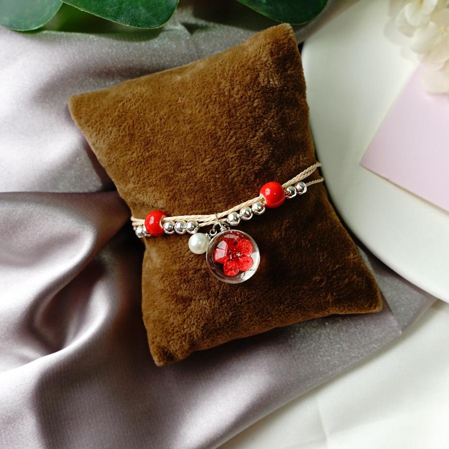 Полная звезда Цветок Растение Сухой цветок Стеклянный шар Керамический ручной работы Браслет для девочек Подарок Природа Простые аксессуары красный