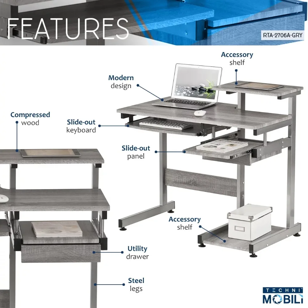 Полная компьютерная рабочая станция, устойчивые к царапинам стальные ножки, серые столы, офисная мебель с кронштейном для клавиатуры