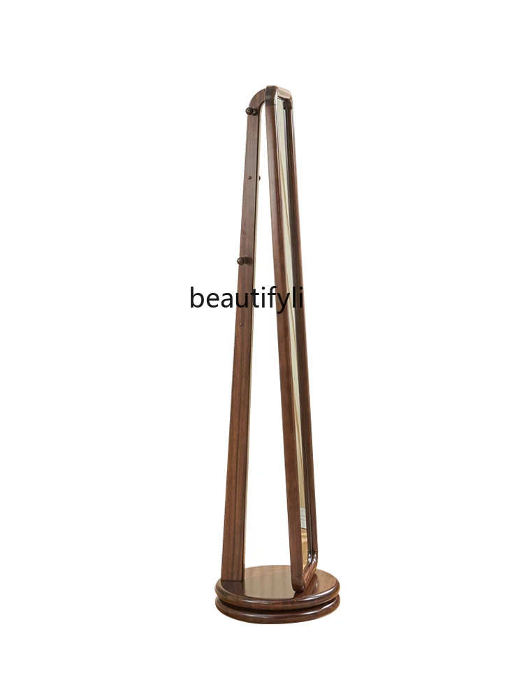 Полноразмерное зеркало из черного ореха, цельное деревянное зеркало, стойка для пальто, встроенное современное поворотное полноразмерное зеркало