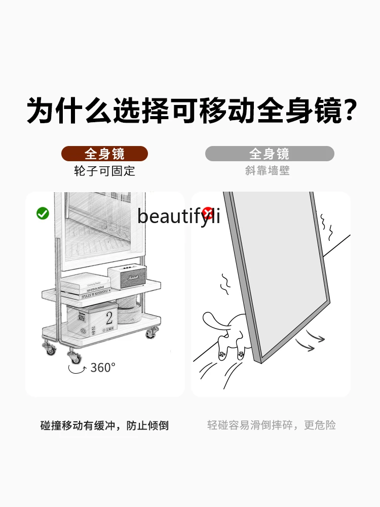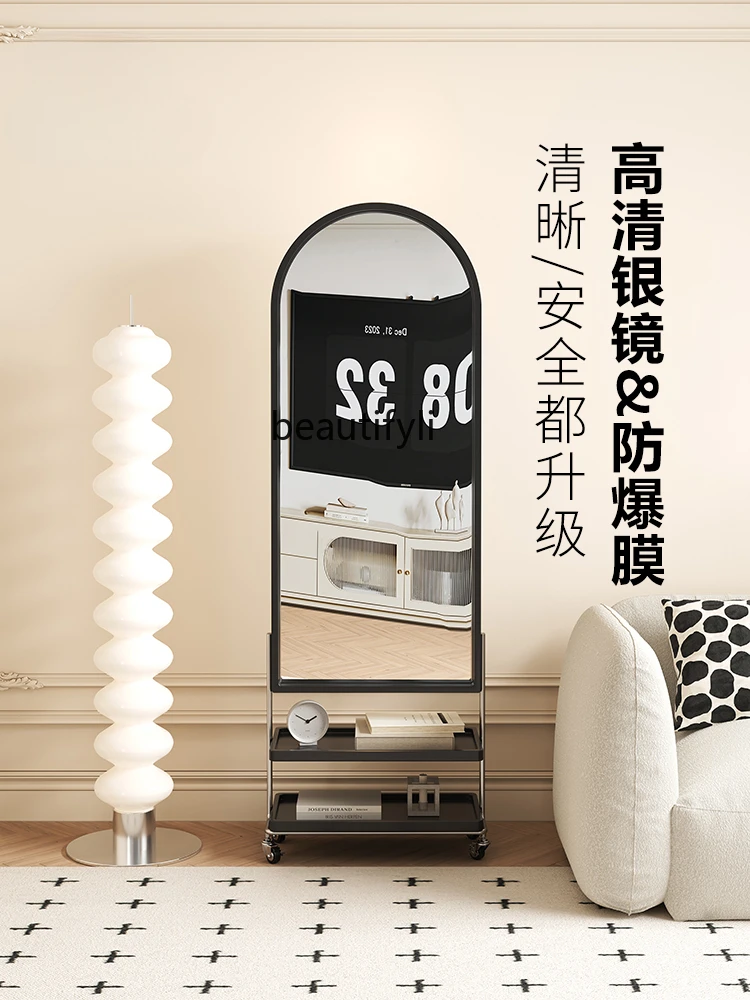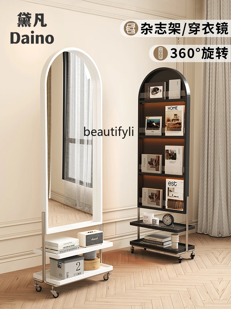 Полноразмерное зеркальное напольное зеркало, домашнее передвижное вращающееся зеркальное зеркало, встроенная книжная полка