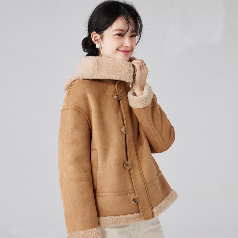 Полностью шерстяные замши для стрижки овец, композитный мех и шерсть, интегрированное меховое пальто из овечьего меха, женское зимнее пальто с лацканами