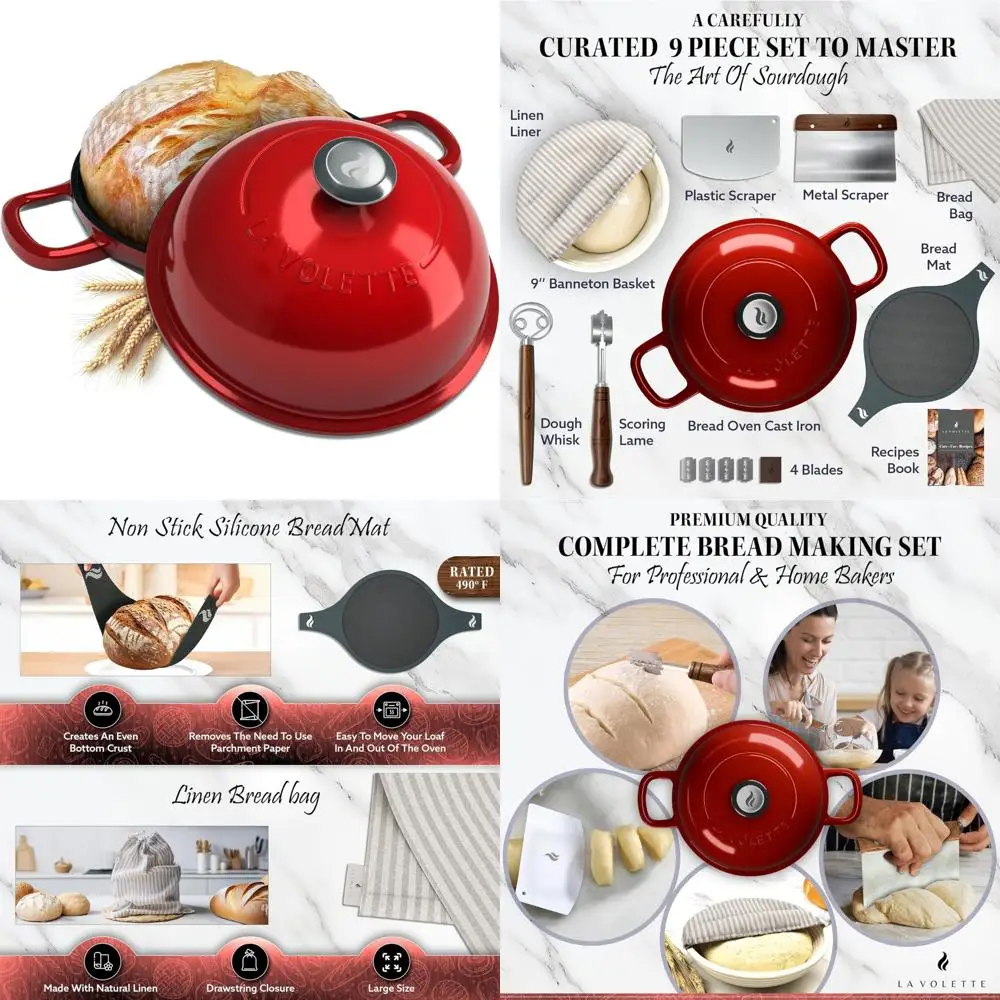 Полный набор для выпечки хлеба из 9 предметов: эмалированная чугунная форма для хлеба с крышкой, 10-дюймовая голландская печь для идеальной выпечки хлеба