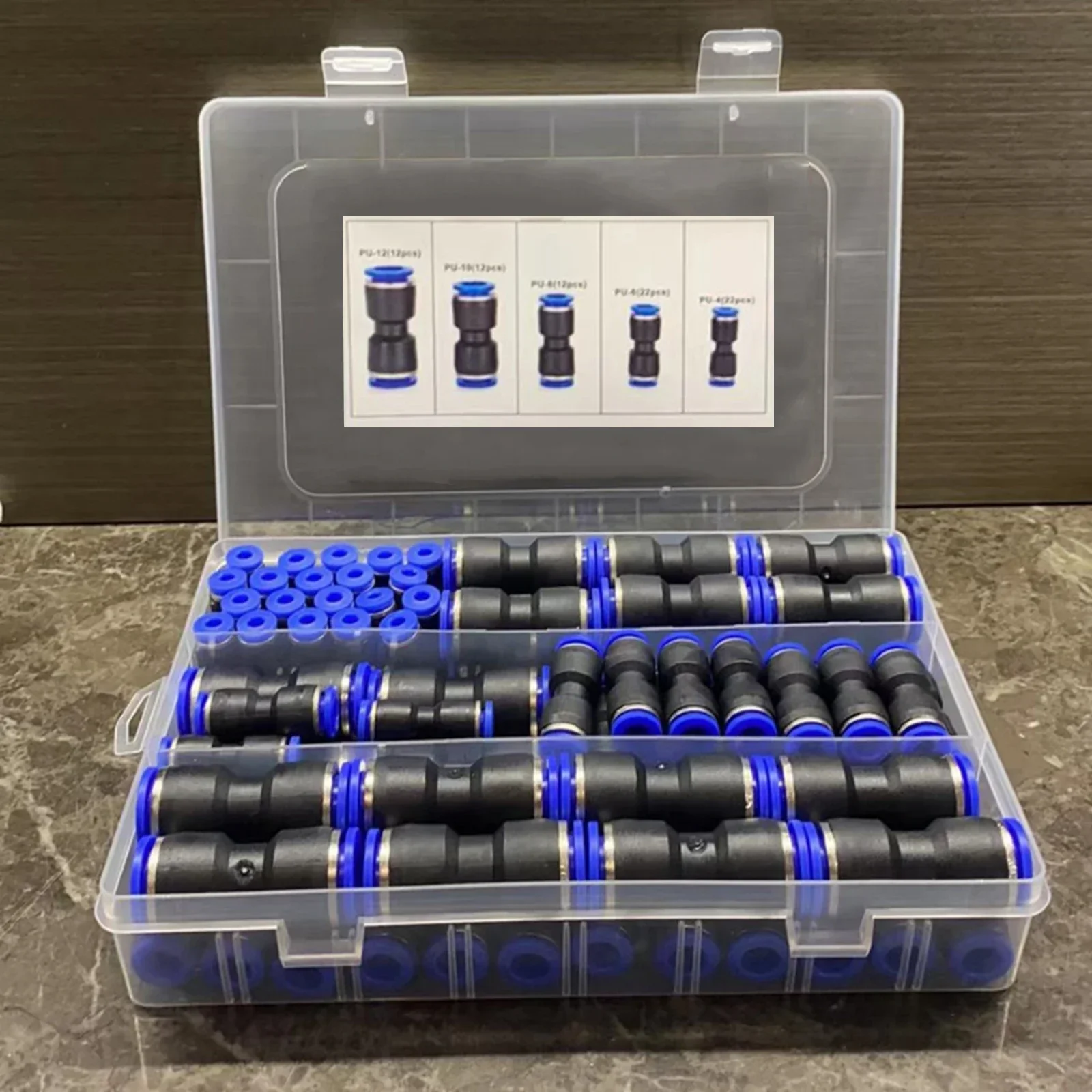 Полный набор из 80 прямых разъемов, надежное соединение для различных размеров трубок, включая диаметр от 12 до 4 мм.