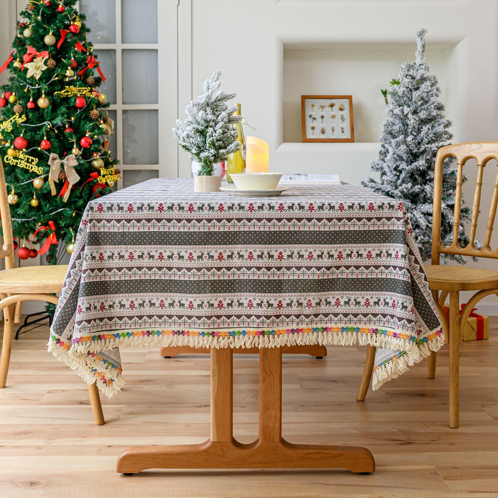 Полосатая Вышивка Цветок Розовый Север Скатерть для Обеденного Стола Скатерть Покрытие Ткань Круглая Подставка Под Стол Бахрома Домашний 60*60cm