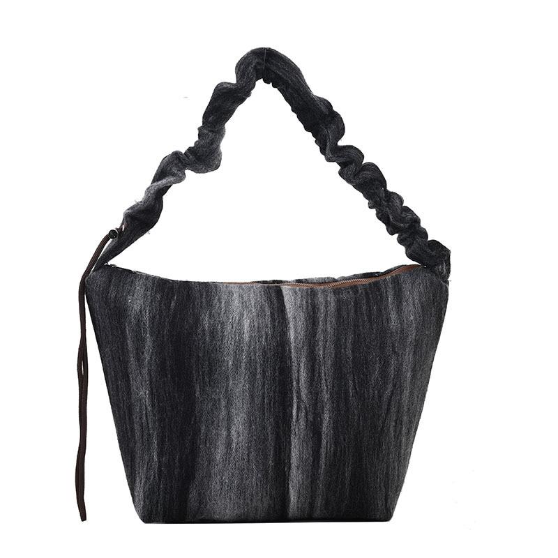 Полосатая большая сумка в стиле ретро, модная сумка через плечо с рюшами, осенне-зимняя твидовая сумка-хобо для женщин чёрный