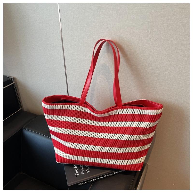 Полосатая вязаная плетеная сумка женская большой вместимости новая летняя универсальная сумка через плечо сумка-тоут для поездок на работу красный