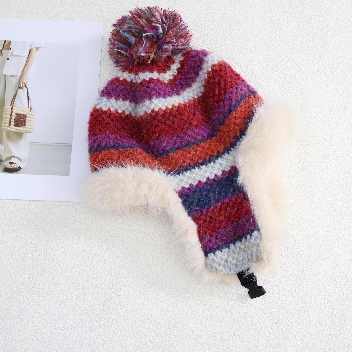 Полосатая вязаная шапка-ушанка женская зимняя утолщенная теплая шапка с защитой ушей для велоспорта, ветрозащитная плюшевая шапка one size