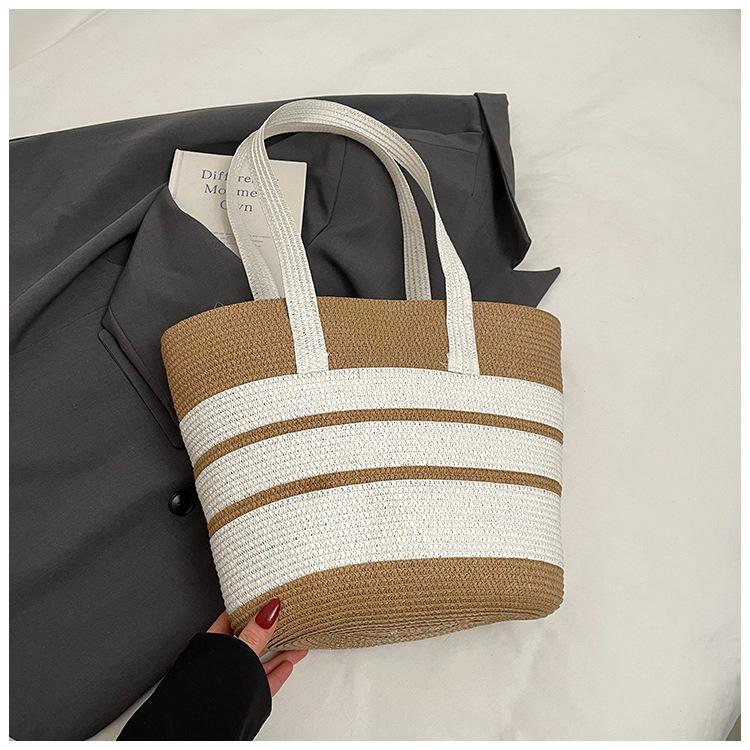 Полосатая соломенная сумка большой вместимости женская новая летняя плетеная сумка через плечо пляжная сумка для отпуска на море