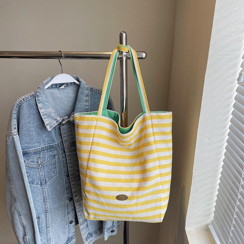 Полосатая холщовая сумка 2025 новая корейский стиль ins сумка-тоут для отдыха на одно плечо большая вместимость сумка-тоут хозяйственная сумка