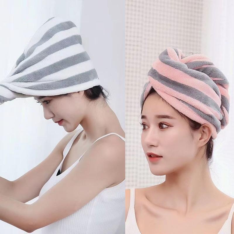 Полосатое быстросохнущее полотенце для волос, женская шапка для сушки волос, коралловый флис, однотонное полотенце, суперпоглощающая шапочка для сушки волос, тюрбан
