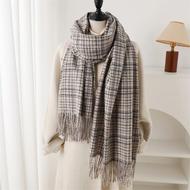 Полосатый клетчатый зимний женский шарф, имитация кашемира, одеяло, толстая теплая шаль из пашмины, пончо с кисточками, палантины Echarpe