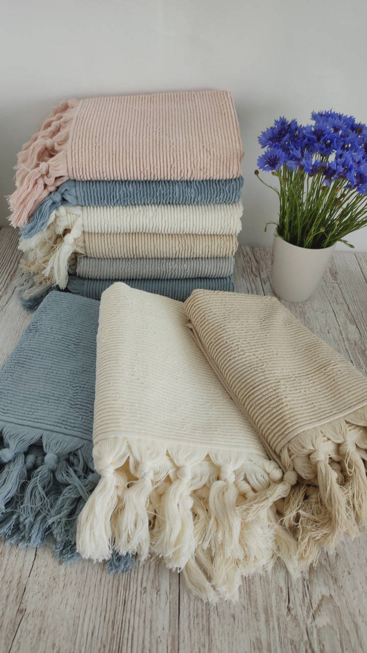Полотенца махровые хлопковые для рук и лица Турция Mercanrose 90х50см с бахромой, Разные цвета