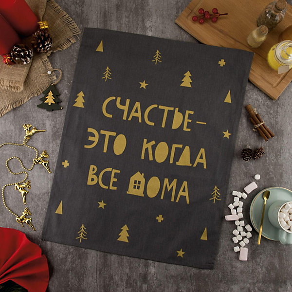 Полотенце Этель "Счастье, Серый, Полотенце Этель "Счастье"
