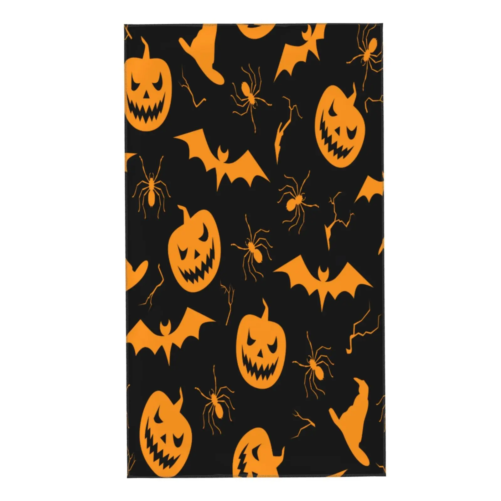 Полотенце для лица, оранжевая тыква для Хэллоуина, летучая мышь и паук на черной мягкой ванной, для отеля, спа, для рук, тренажерного зала, Спо...