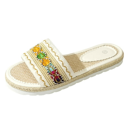Blphud Woman Slides Slippers for Women Women Summer Slip on Casual Open Toe Rhinestone Flat Soft Bottom Breathable Slippers Shoes Sandals Slippers for Women White 40