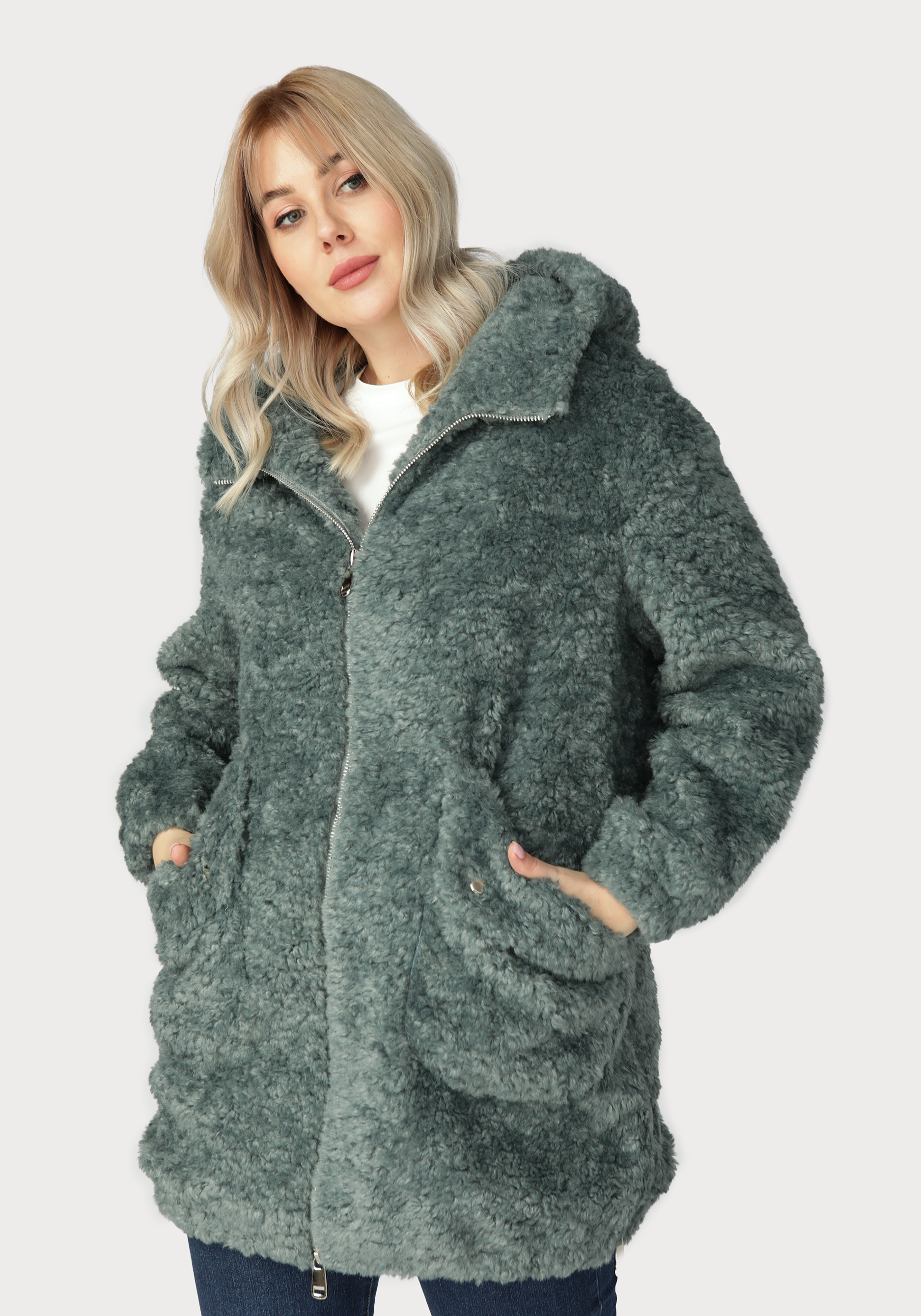Полупальто из овечьей шерсти с капюшоном, Синий