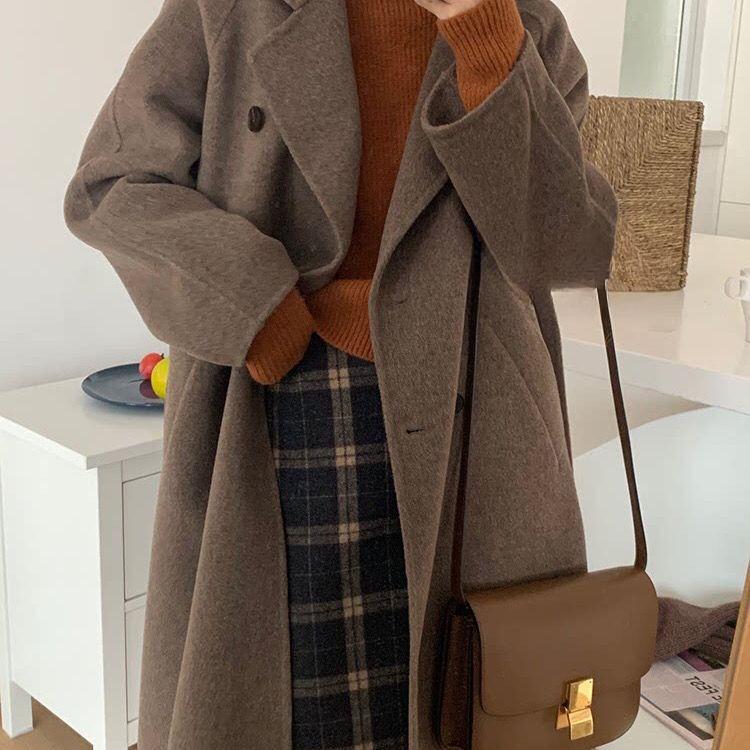 Полупальто шерстяное женское осенне-зимнее высококлассное элегантное свободное утолщенное шерстяное верхнее пальто 2XL