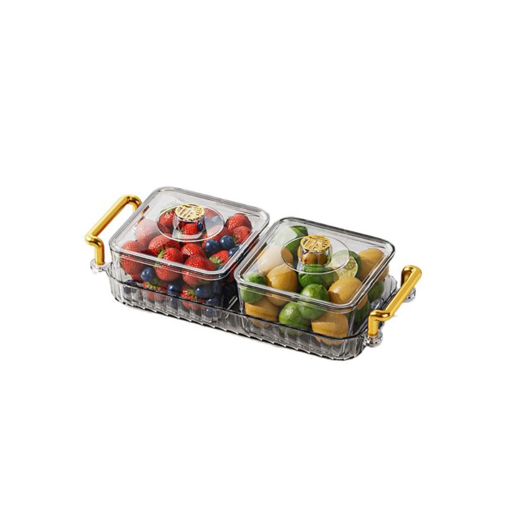 Полупрозрачное блюдо для десертов Современная тарелка для сухофруктов Пластиковый поднос для хранения фруктов Вечеринка White-2 Compartment