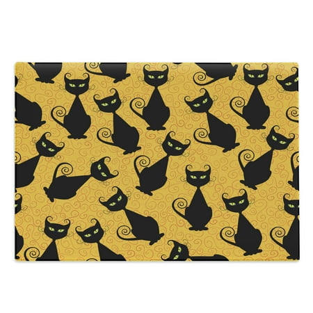Vintage Cutting Board Black Cat Pattern for Halloween on Orange Background Celebration Graphic Patterns Decorative Tempered Glass Cutting and Serving Board Large Size Black Orange by Ambesonne