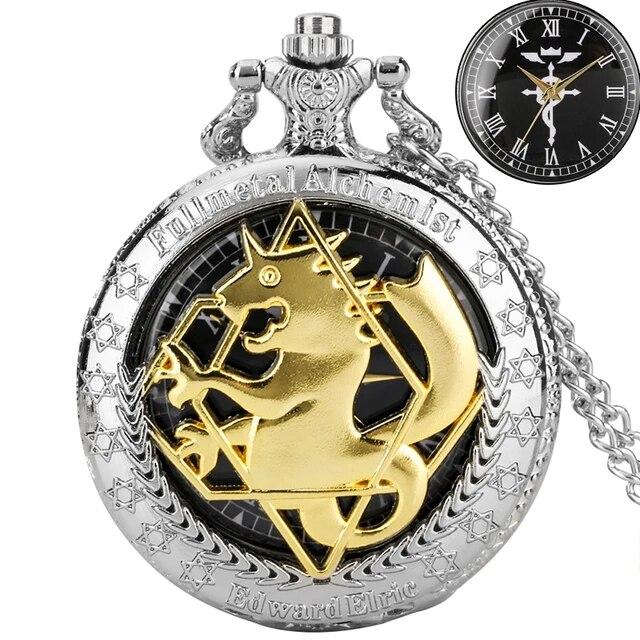 Полые серебряные золотые тона Стальной Алхимик Карманные Часы Косплей Полые Эдвард Элрик Аниме Дизайн Кулон Ожерелье Цепи Часы