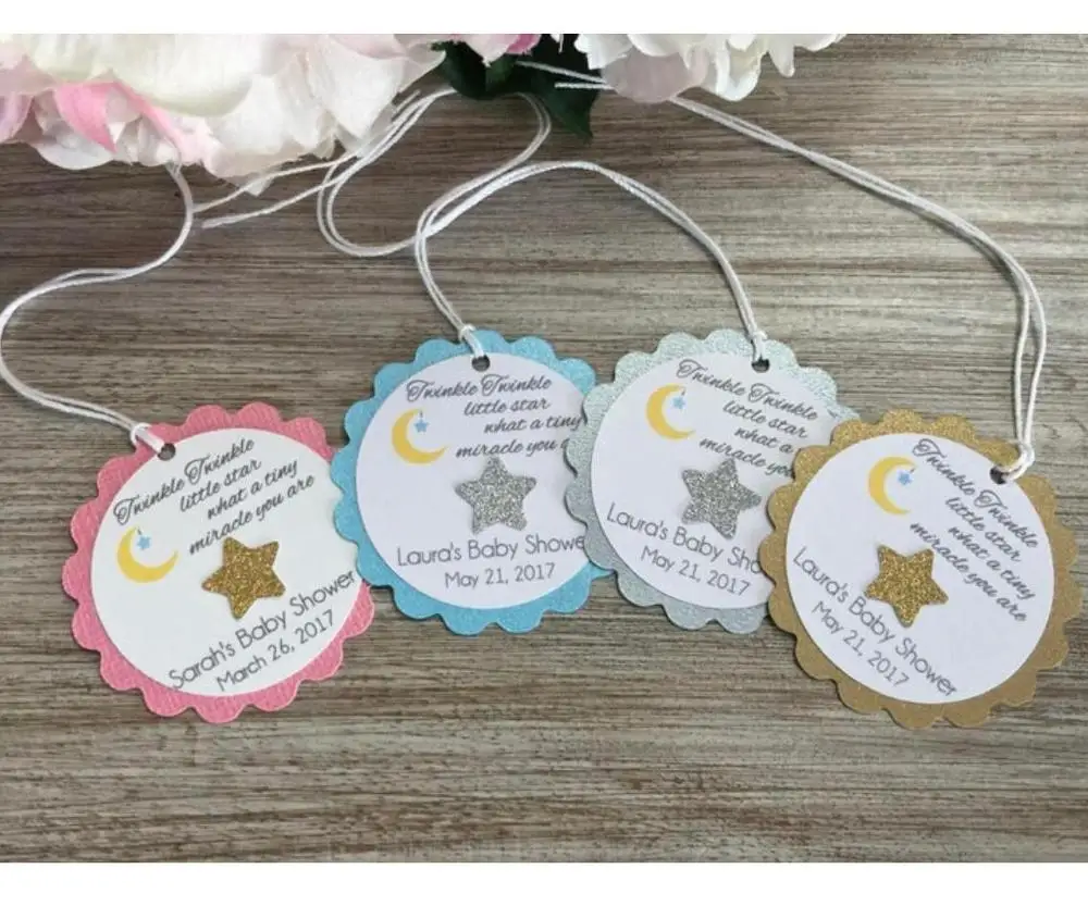 Пользовательский любой язык текст Мерцающая маленькая звезда детский душ Крещение любимые бирки, маленькая звезда первая день рождения би...
