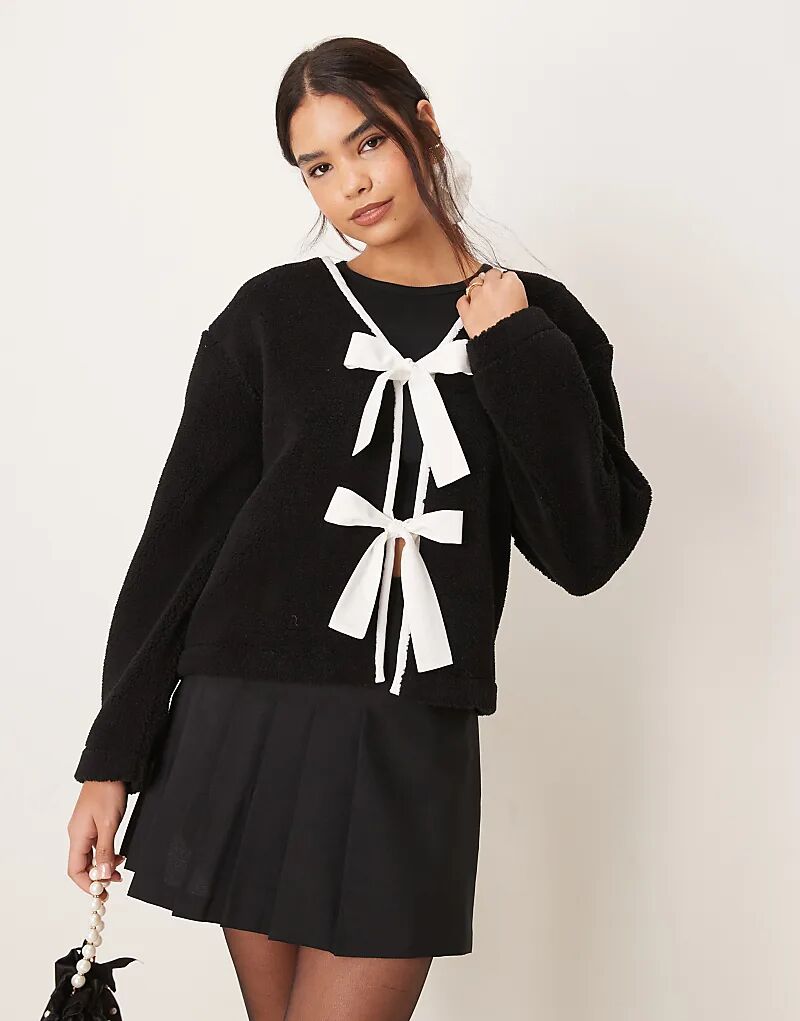 Куртка борг с деталями в виде галстука-бабочки черного цвета ASOS DESIGN, Черный, Куртка борг с деталями в виде галстука-бабочки черного цвета ASOS DESIGN