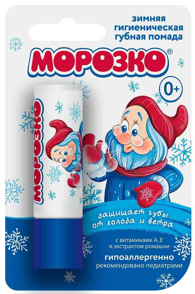 Помада гигиеническая детская Морозко Зимняя с витаминами A, E и экстрактом ромашки, с рождения