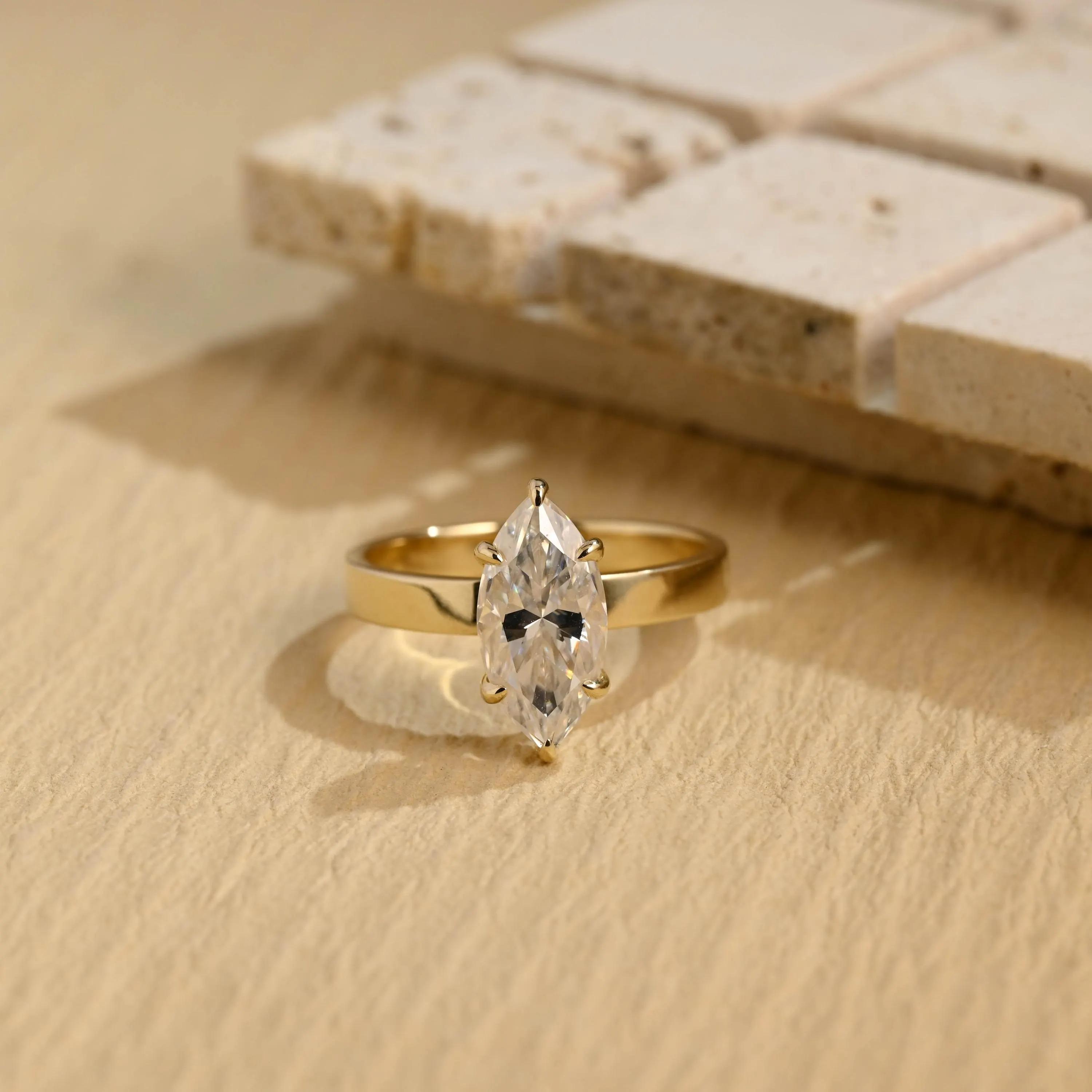 Помолвочное кольцо с муассанитом огранки «маркиза», кольцо-солитер шириной 3 мм, кольцо обещания, годовщина, день рождения, подарок на День святого Валентина для нее Q розовый