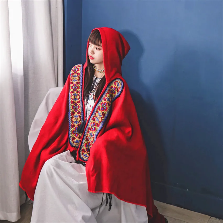Пончо женское в этническом стиле, дизайнерская большая шаль с цветочной вышивкой, теплая зимняя повседневная накидка, праздничная Домашняя...