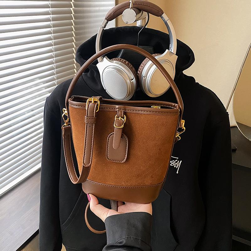 Популярная в этом году маленькая женская сумка осень-зима 2025 новая ретро на плечо, сумка-мессенджер, повседневная портативная сумка-ведро коричневый