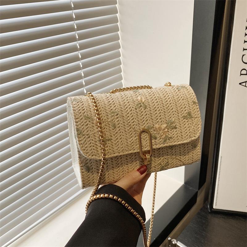 Популярная в этом году маленькая женская сумка 2025 лето новая модная трендовая сумка через плечо и мессенджер, сумка-бестселлер в интернете, кружевная соломенная маленькая квадратная сумка белый