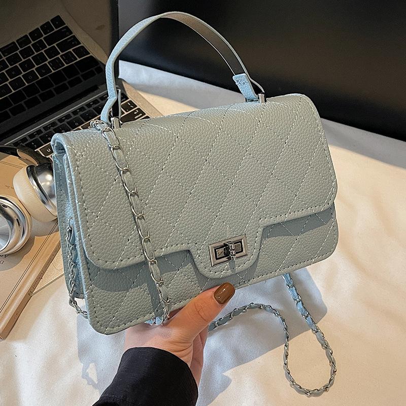Популярная в этом году маленькая женская сумка 2025 новая модная сумка-мессенджер на цепочке с бриллиантами, высококлассная портативная маленькая квадратная сумка синий