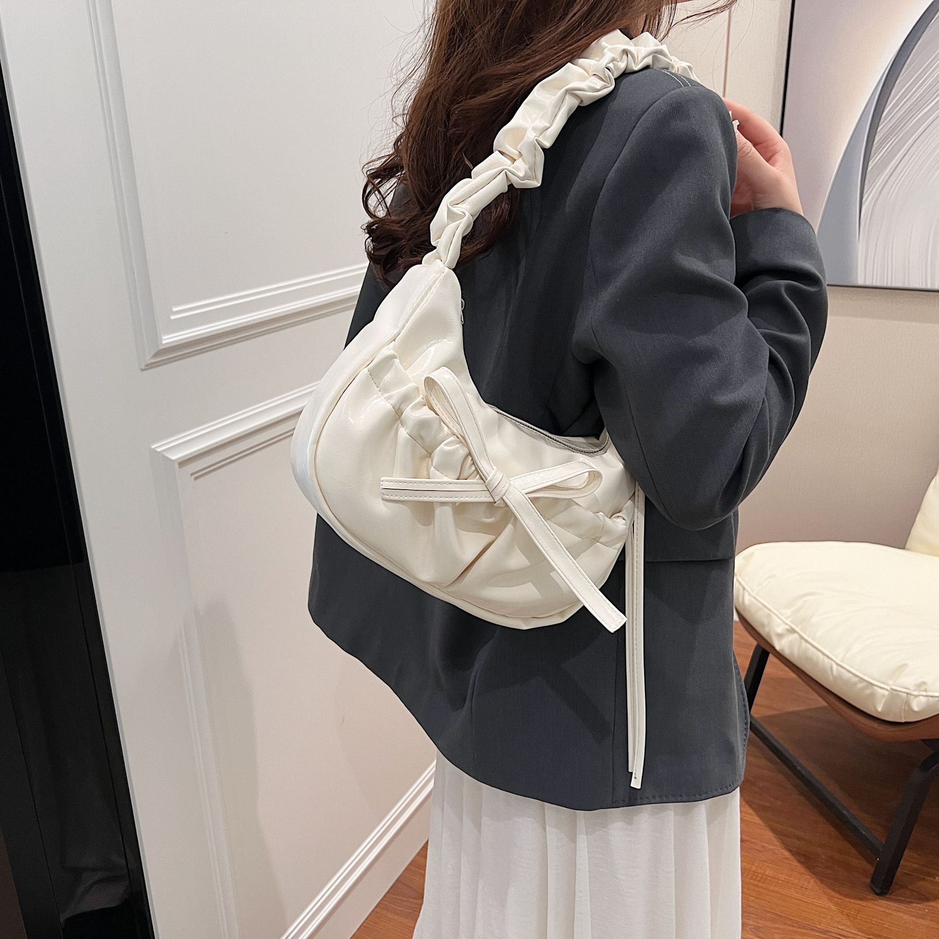 Популярная в этом году плиссированная сумка женская новинка 2024 года летняя модная сумка-пельмень на плечо высокого класса универсальная сумка через подмышку
