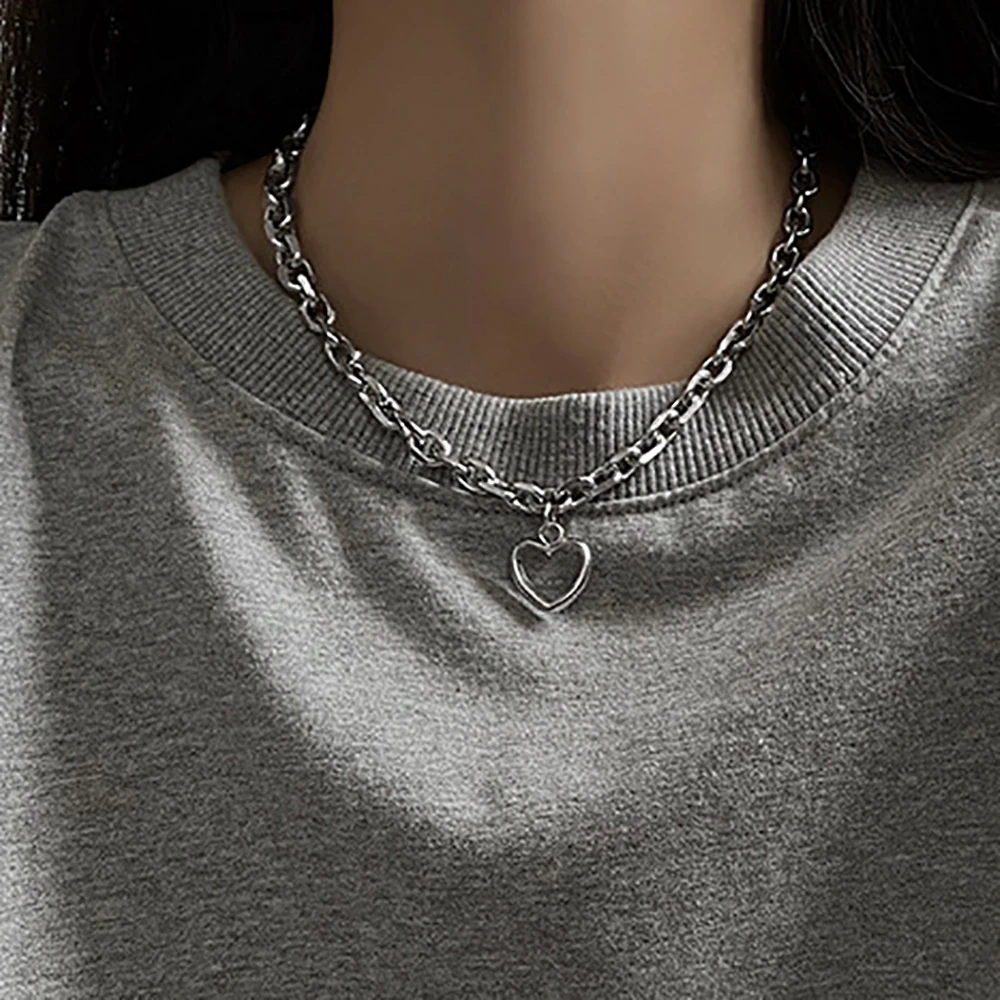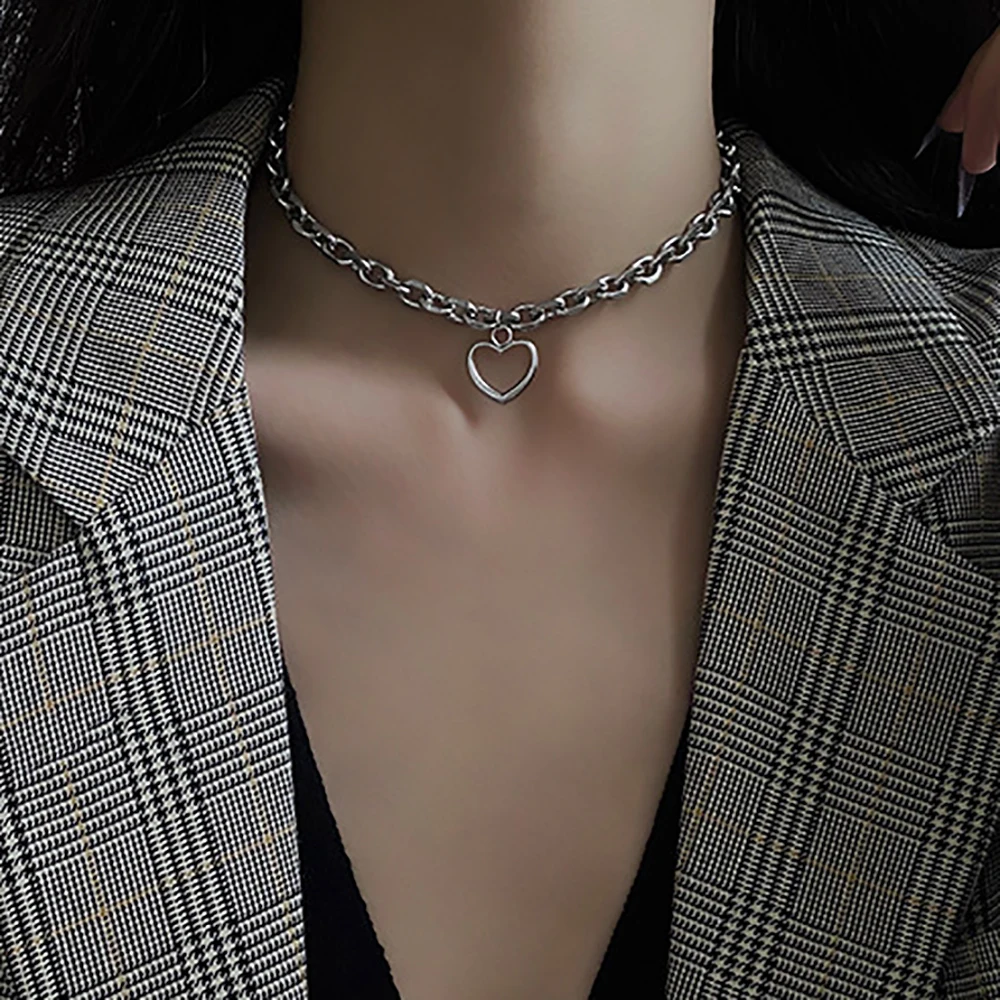 Популярная металлическая толстая цепь в стиле хип-хоп, женское ожерелье, золотое ажурное ожерелье с кулоном Love, женское ожерелье, украшения ...