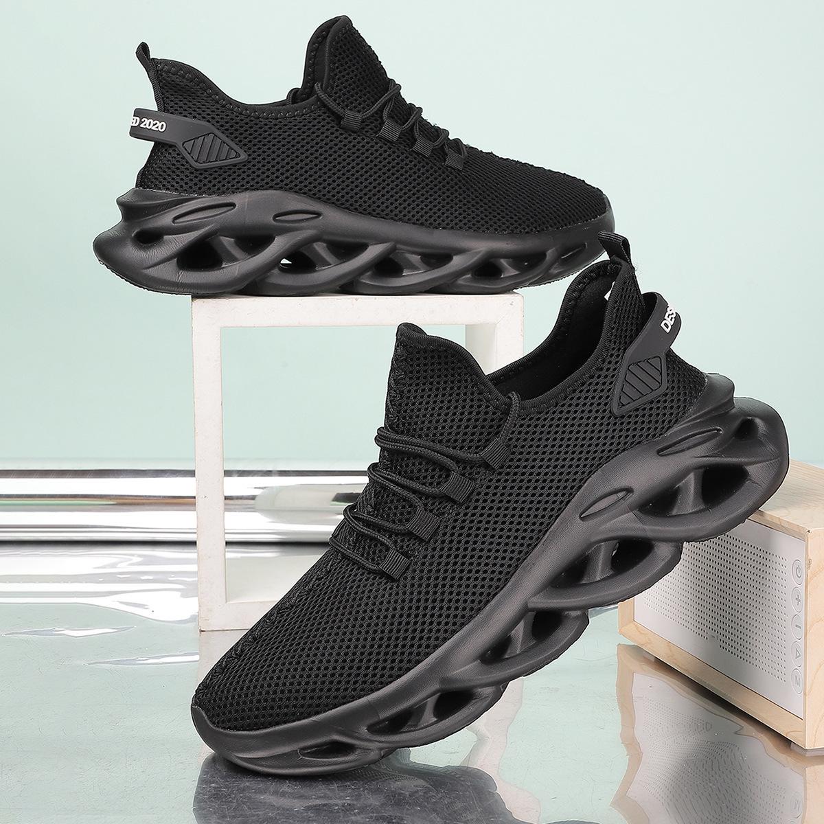 Популярная повседневная спортивная обувь большого размера, мужская сетчатая обувь с закрученным дном, повседневная мужская обувь для бега с амортизацией, легкая мягкая подошва 36 чёрный