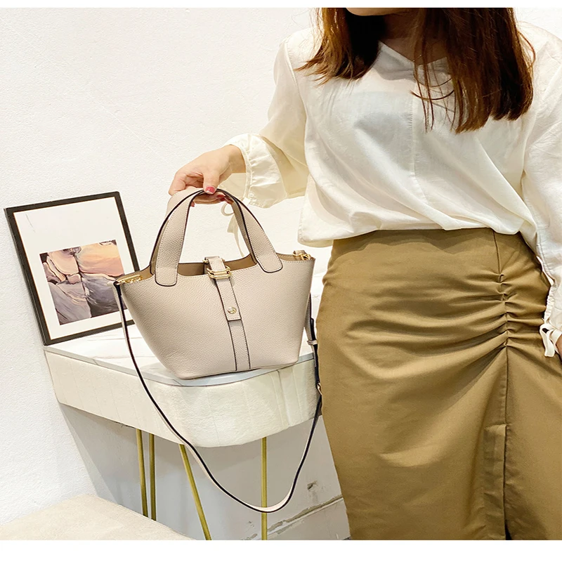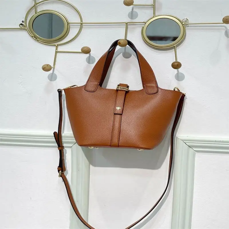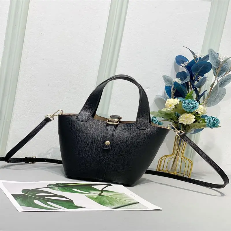 Популярная стильная женская сумка 2021, роскошная сумка-мешок из воловьей кожи с верхним слоем, женская модная сумка, кожаная корзина для овощ...