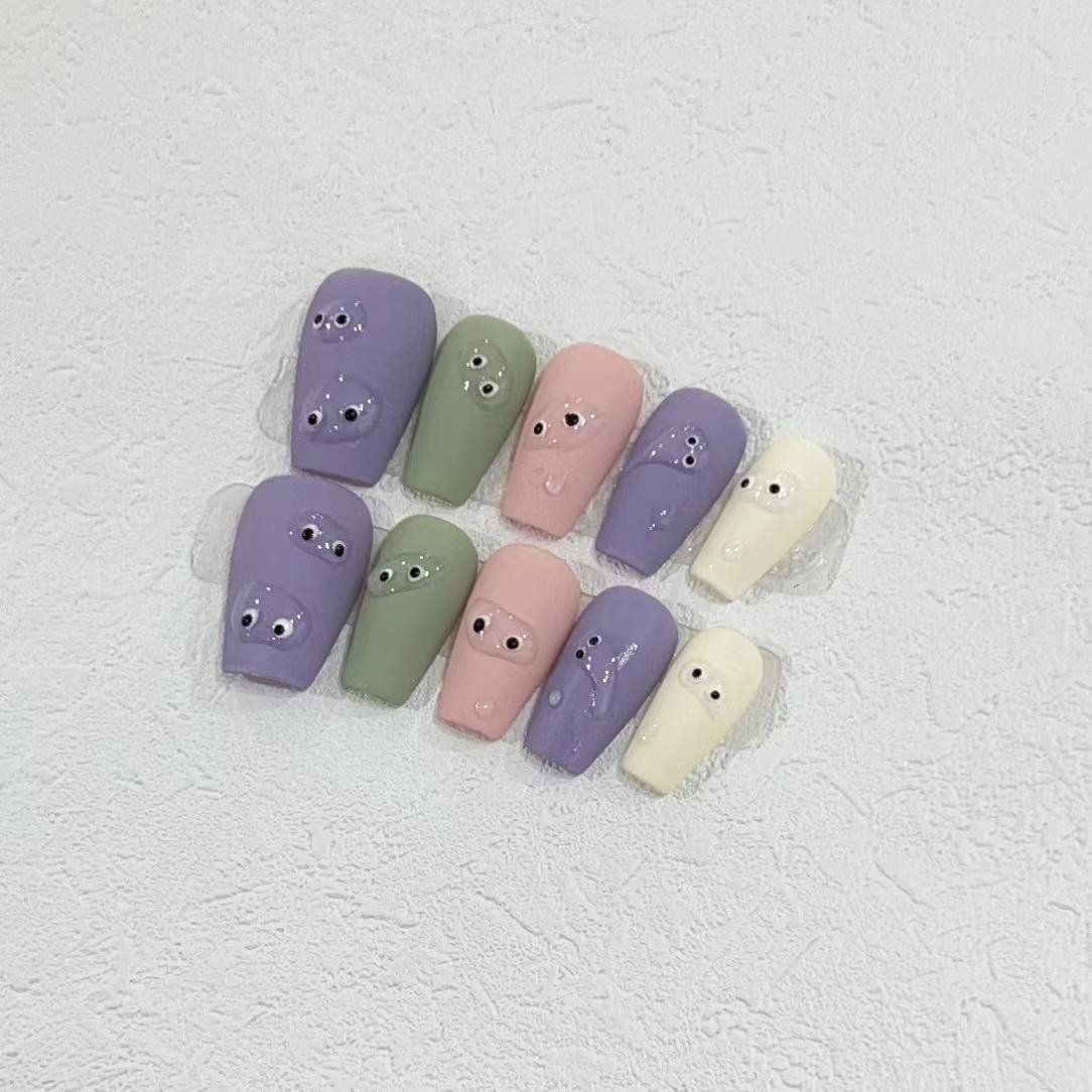 Популярные Доспехи для Ношения Ручной Работы Японские Милые Смешные Глаза Короткие Ногти Могут Быть Сняты и Использованы Повторно Нейл-арт Large L