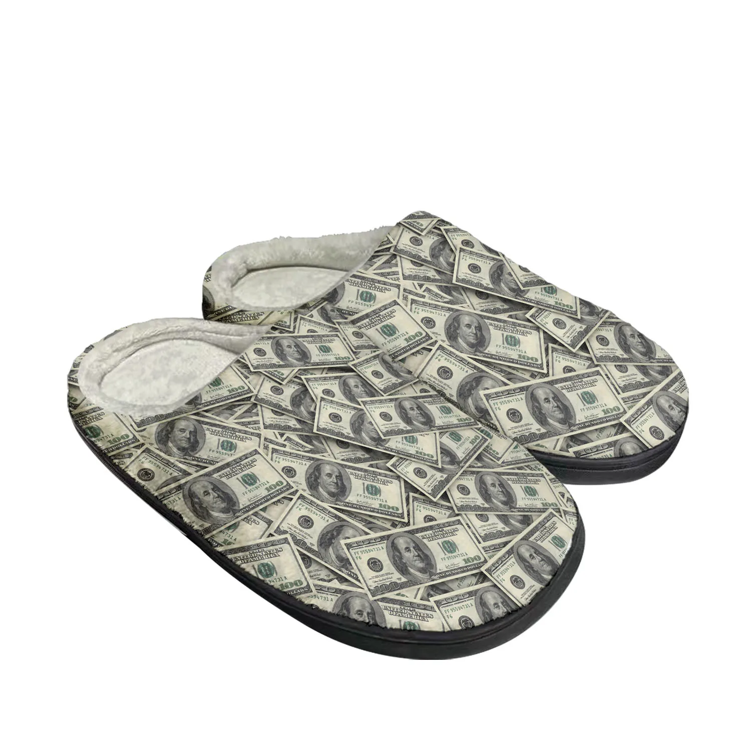 Популярные домашние хлопковые тапочки на заказ с принтом долларов, мужские и женские сандалии, плюшевая спальня, Повседневная сохраняющая тепло обувь, черные термотапочки