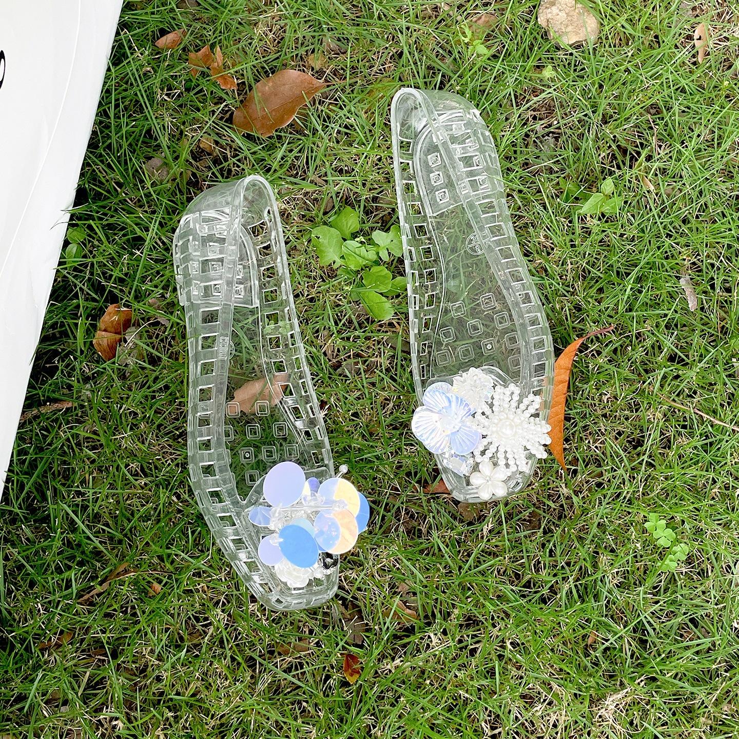 Популярные сандалии-балетки Xiaoxiangfeng в стиле ретро, женские 2025, летние, для улицы, под юбку, корейская версия, хрустальные туфли-желе 40 прозрачный