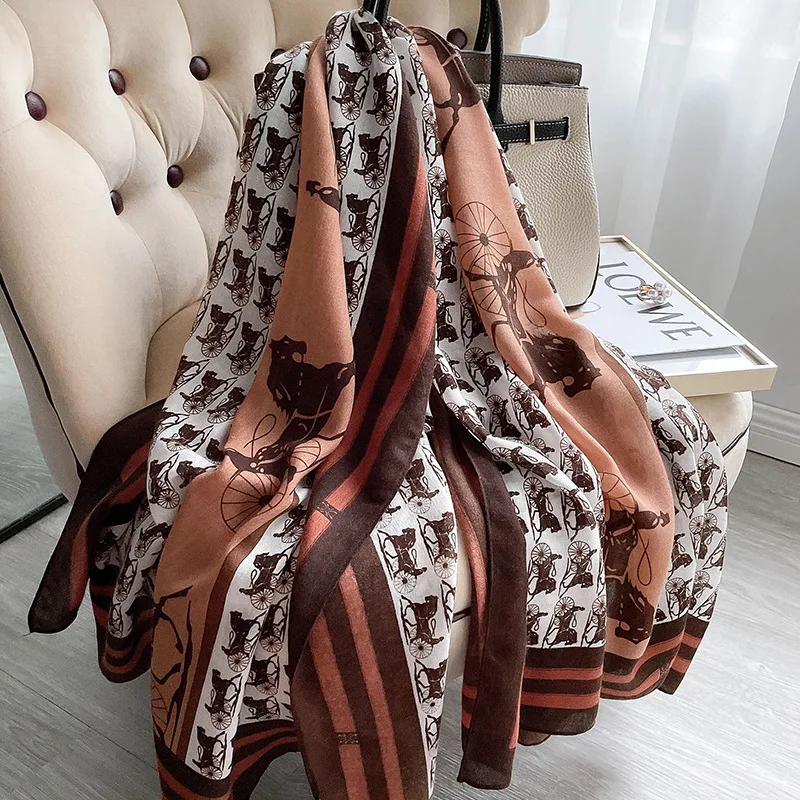 Популярные шелковые шарфы с принтом, зимняя хлопковая и конопляная бандана, роскошное стильное солнцезащитное пляжное полотенце, модные ша...