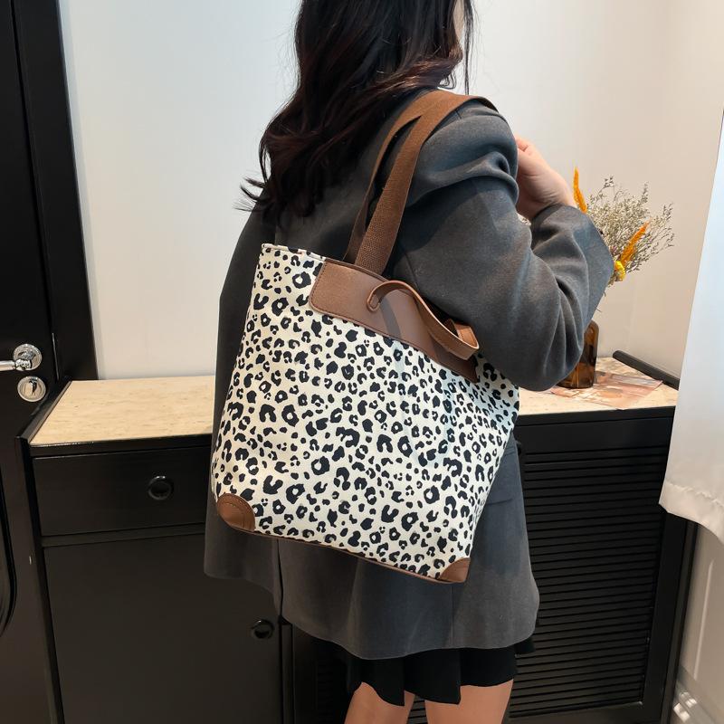 Популярный леопардовый принт большая сумка сумка-мессенджер новая сумочка контрастного цвета универсальная сумка-ведро для поездок на работу белый
