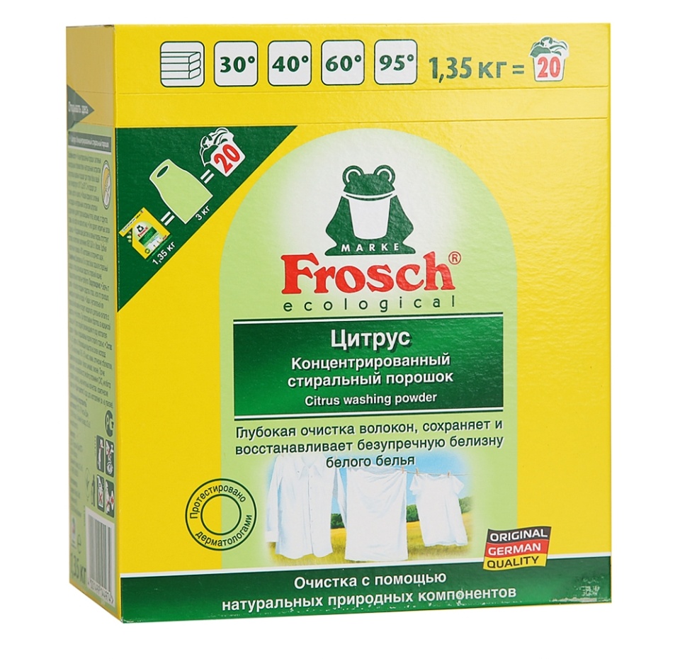 Порошок стиральный Frosch Citrus для белого белья концентрат 1.35 кг в пакете