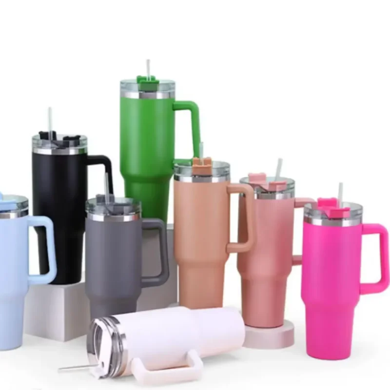 Портативная автомобильная чашка большой емкости с ручкой, соломенная двойная стенка, изоляция, ледяная дорожная чашка, кофейная чашка, идеальный подарок