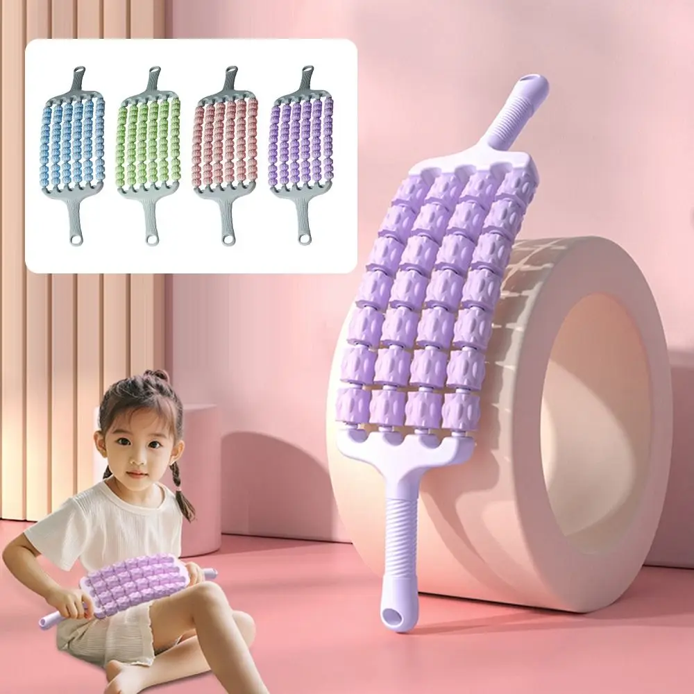 Портативная изогнутая массажная палочка для йоги, нескользящая сенсорная тренировочная роликовая палочка для мышц, четыре/шесть рядов, фасциальная палочка для спины и плеч