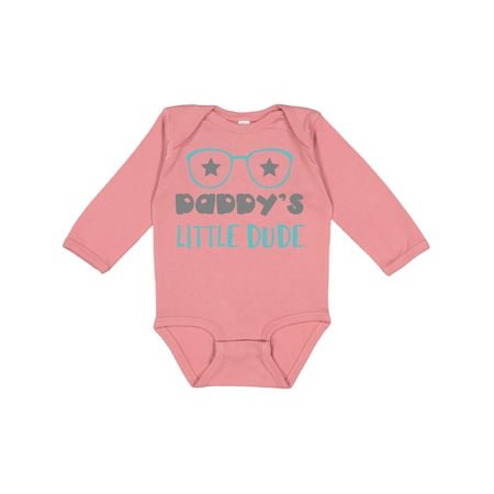 Inktastic Daddy s Little Dude Glasses Stars - Blue Gray Gift Baby Boy Long Sleeve Bodysuit