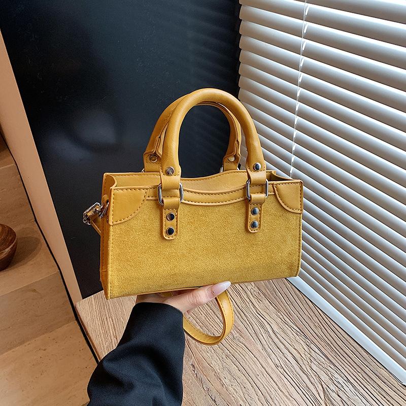 Портативная маленькая квадратная сумка в стиле локомотива, женская осенне-зимняя новинка, высококлассная ретро замшевая сумка на плечо через плечо жёлтый