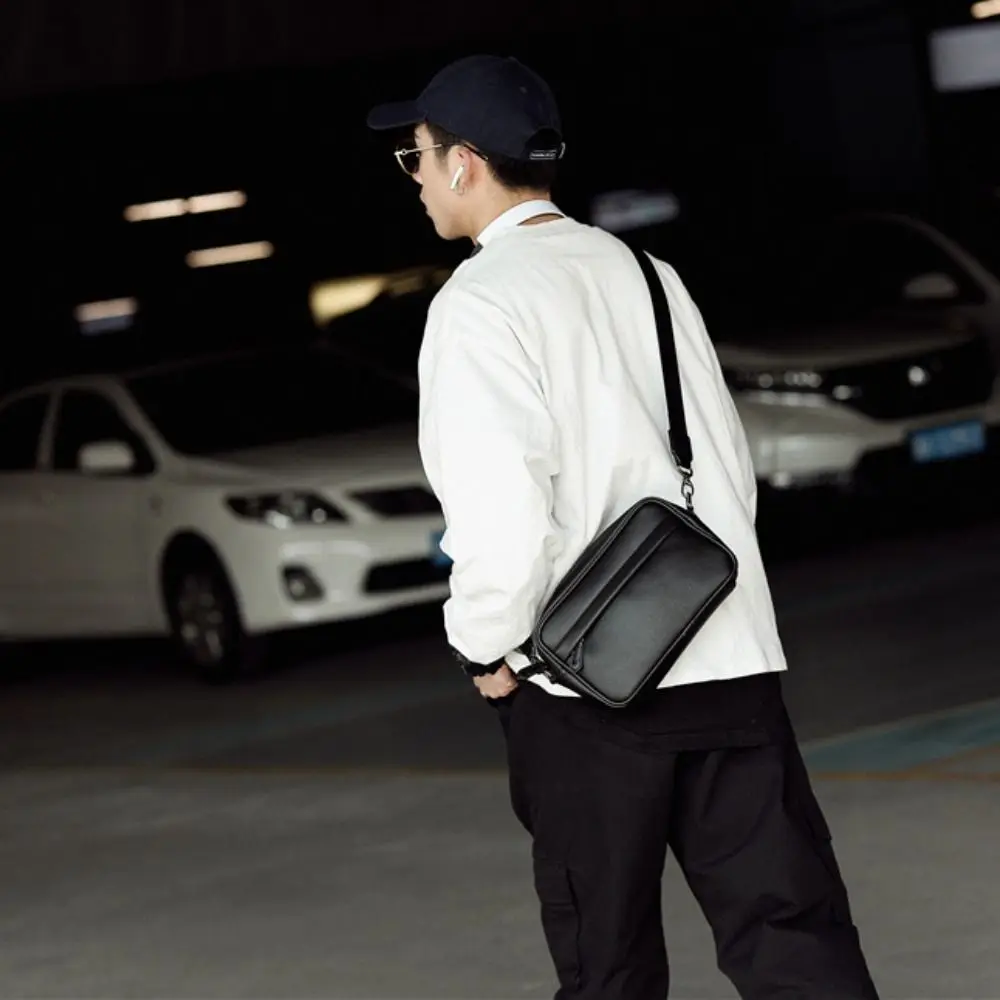 Портативная мужская сумка через плечо из искусственной кожи, черная деловая сумка через плечо с несколькими карманами, повседневная водонепроницаемая мужская сумка на ремне для путешествий